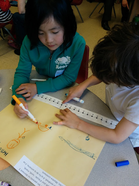 I also introduced 5 new centres that focus on numeracy, for the last month of school. After explaining each centre through the week, we finally did them all on Friday. The above activity with base 10 blocks is one centre. Another has kids grab a pile of pennies, estimate how many there are, and then put them into groups of 10 to count.
