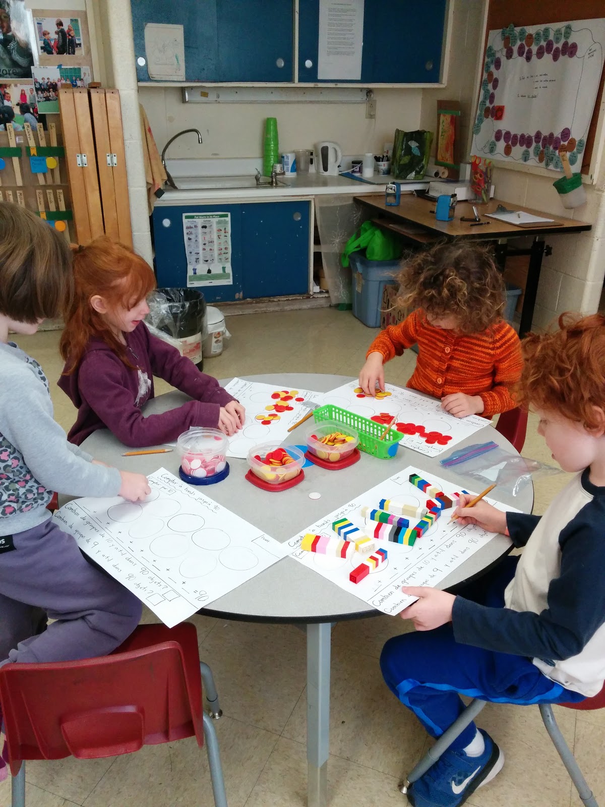 In writer's workshop, we edited a student's story together, adding capital letters and periods and fixing spelling errors. We reviewed all of the comptines we have learned this year, and students were encouraged to write down the comptines if they lacked writing topics. We also finished our Chaque Jour projects.